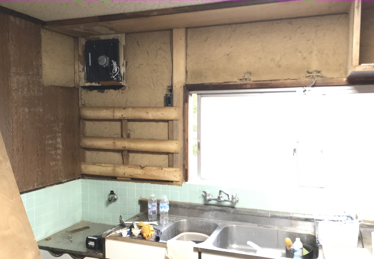 ① 吊り戸棚破壊と壁作り